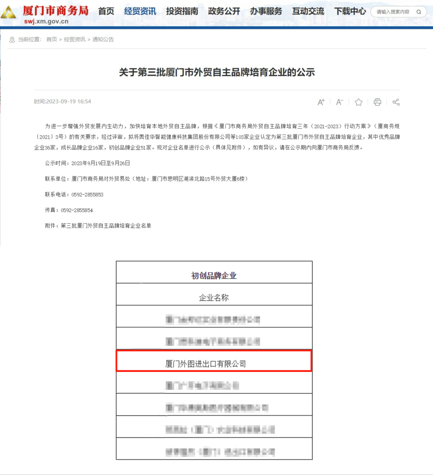 廈門(mén)市(shì)外(wài)貿自(zì)主品牌培育企業(yè)