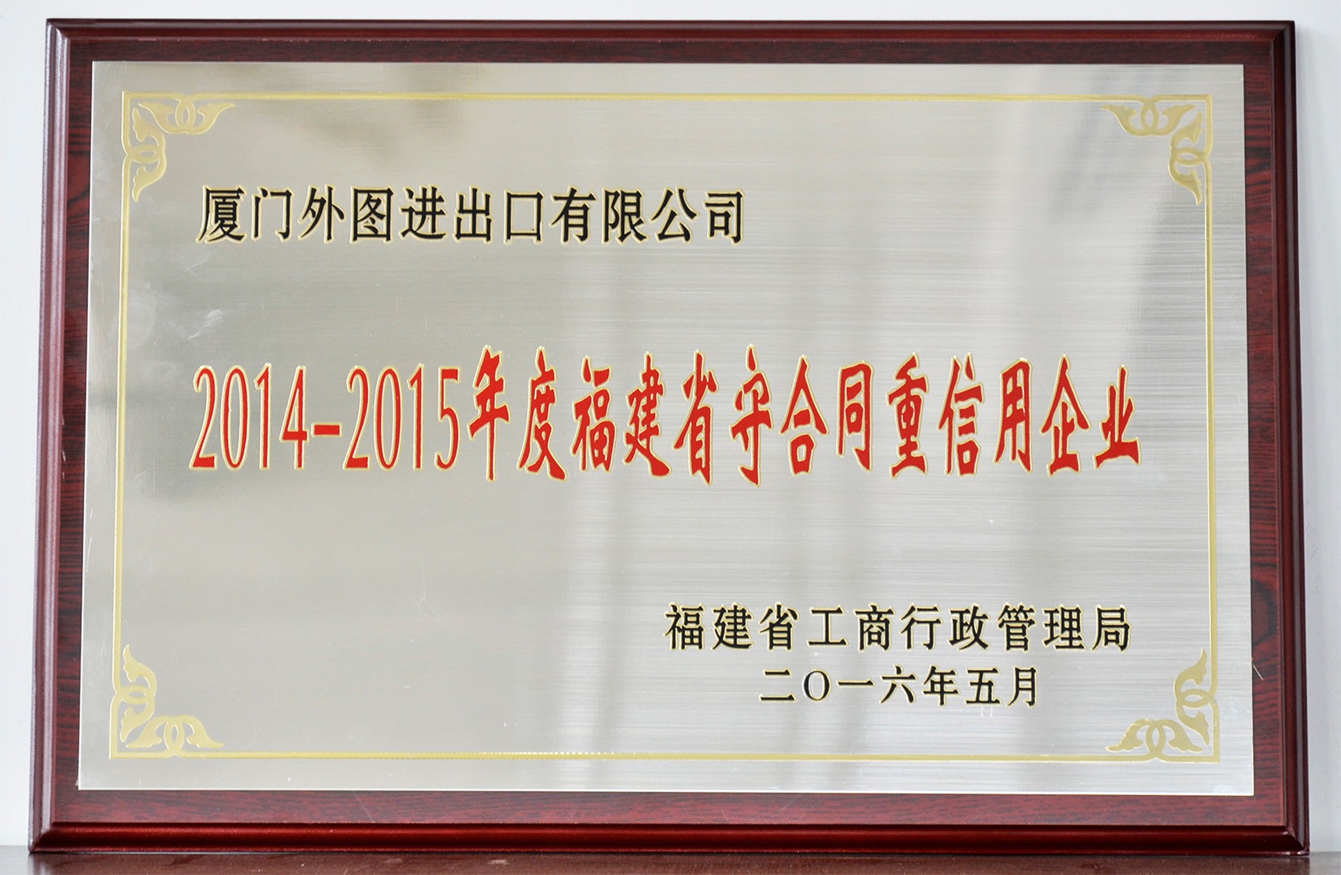 福建省守合同重信用(yòng)企業(yè)--2014-2015年(nián)度
