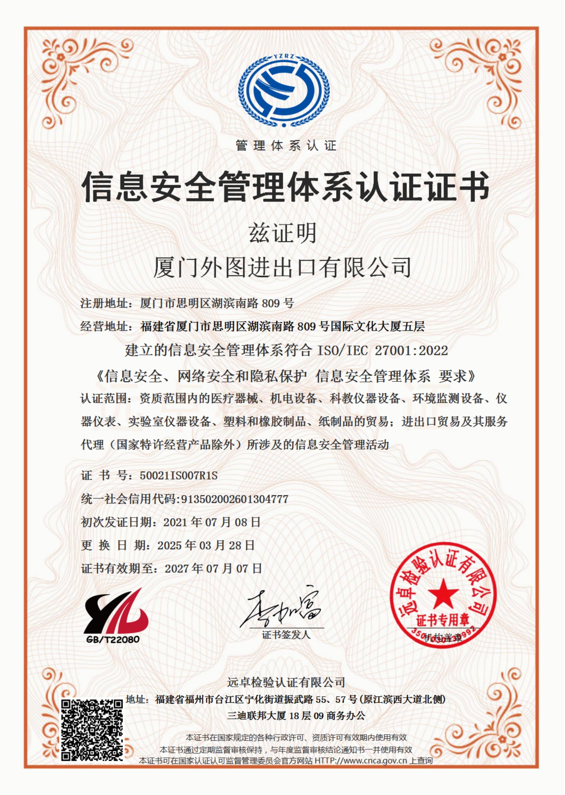 信息安全管理(lǐ)體(tǐ)系認證證書(shū)